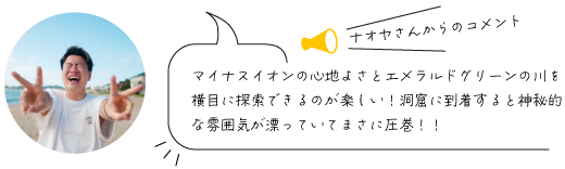 5分ほどついていくと澄んだエメラルドグリーンの川が出現。
