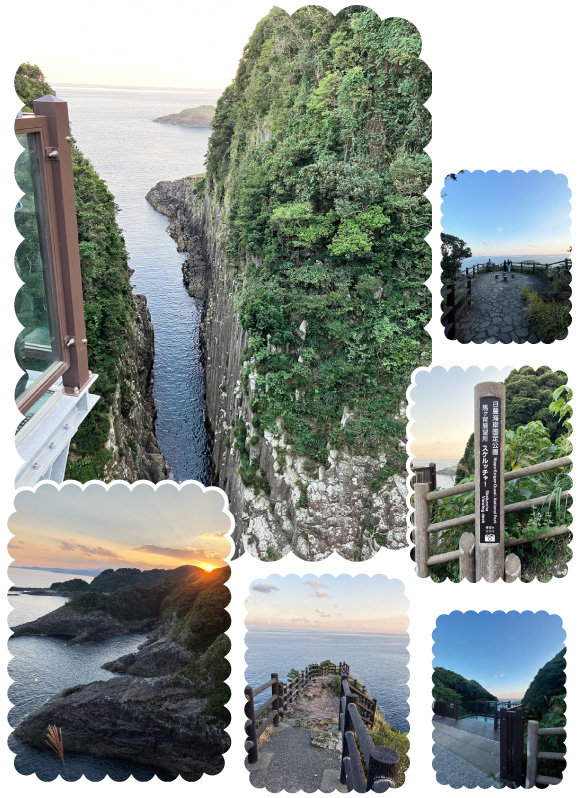 約1500万年前の海底火山噴火によって隆起し、流れ出た溶岩が冷え固まった後、波の浸食により形成された奥行き200メートル、幅10メートルの海水路を挟んで約70mの柱状節理からなる断崖絶壁。