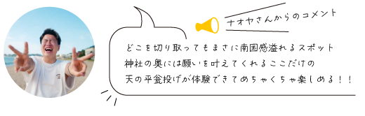 島全体が境内となっており、熱帯・亜熱帯植物が群生していて南国の雰囲気を味わいながら参拝できる特別な空間です。